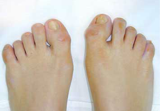 El paciente presenta una deformidad ósea, que altera la estructura del calzado y con el tiempo éste adopta la posición de la deformidad. El enfermo se queja de dolor, debido a la presión y fricción ocasionada por el calzado y por la pérdida de la alineación del dedo con respecto al resto del pie. La deformidad ósea (también llamada juanete), produce inflamación de las partes blandas y en ocasiones se pueden presentar procesos infecciosos o ulcerarce.